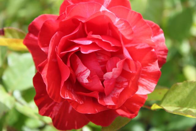 Paul Gauguin, deep reddish mauve with pink and white stripes, fragrant and blooming in flushes throughout the season.
