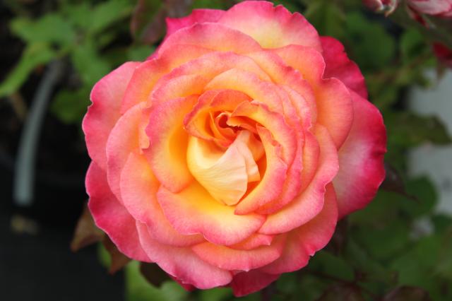 Tropical Skies, grows to 1m tall, pink and yellow, repeat flower and fragrant.