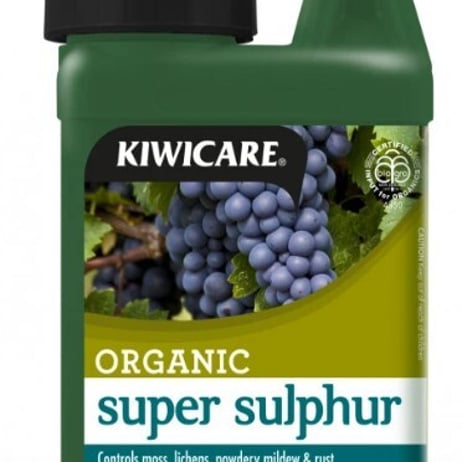 Super SulphurOrganic control of diseases - powdery mildew, blackspot and rust. Plus control of moss, lichen and mites. Benefits Controls moss, lichen, powdery mildew and rust. Also control spider mite. For use on fruit trees, vegetables and roses. No withholding period. No leaf burn. BioGro® Certified Organic for use in organic gardening.