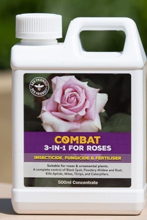 Combat 3 in 1Not only an insecticide and fungicide but a natural fish fertiliser with minerals and trace elements essential for healthy plants. Systemic control of Black Spot, Powdery Mildew and Rust. Kills Aphids, Mites, Thrips, Caterpillars and Budworm. A bee-friendly “three in one” Rose and Ornamental spray.