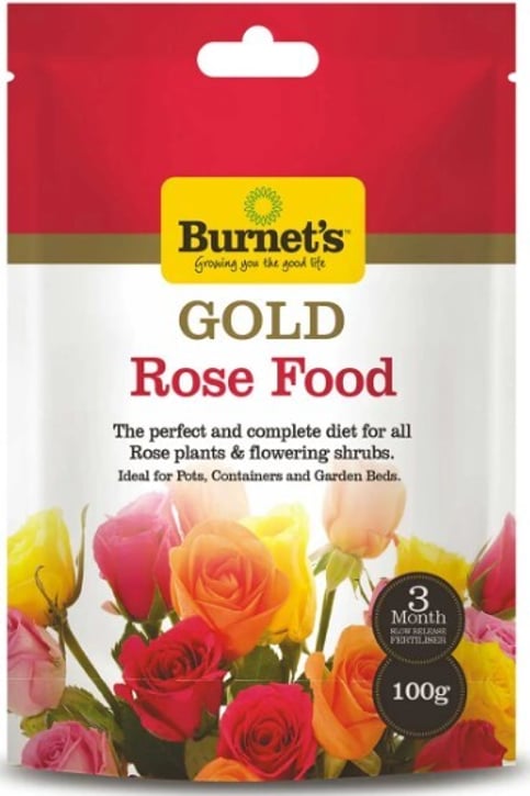 Gold Rose Food3 month slow release fertilizer Complete nutrient profile for roses and flowering shrubs Suitable for all container grown or open ground grown rose varieties NPK: 14 – 6 – 11.6 Trace elements of Sulphur, Iron, Magnesium and Manganese. Available in 100gm