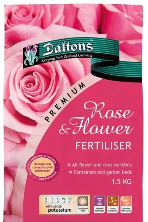 Daltons Premium Rose & FlowerDaltons Premium Rose & Flower Fertiliser is specifically formulated for growing flowers and all rose varieties, including mini and carpet roses. It provides a balanced supply of nutrients for up to 3 months, promoting healthy green leaves and beautiful blooms. Daltons Premium Rose & Flower Fertiliser also contains a balanced blend of trace elements including magnesium. It’s chloride free formulation makes it safe to use with all rose varieties. Available in 500gm & 1.5kg (8kg special order)