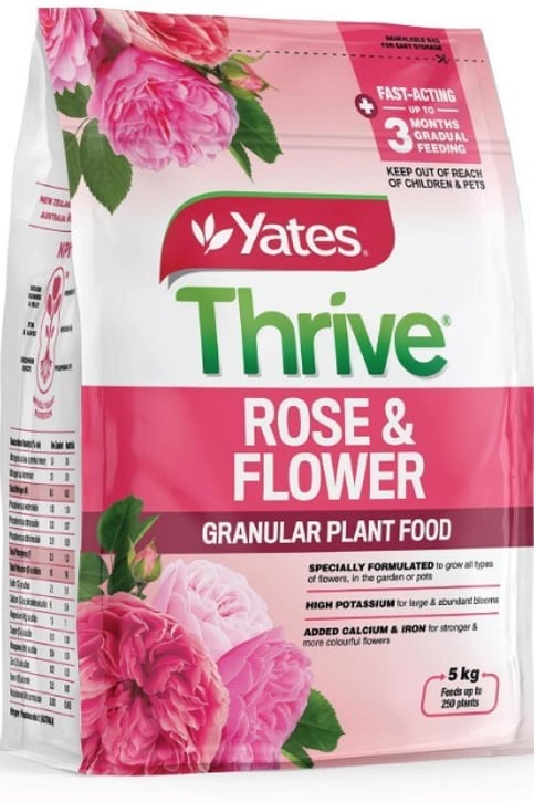 Yates Thrive Rose & FlowerYates Thrive Rose & Flower Granular Plant Food will help colour your world with large abundant roses & flowers, in pots or garden beds. The granular format is great value, plus quick & easy to use by simply sprinkling around your plants. Designed specifically for nutrient-hungry flowering plants, this granular format is formulated with controlled released nitrogen to feed flowers gradually for up to 12 weeks and a custom blend of different elements to deliver a fast feeding format. Available in 2kg & 5kg