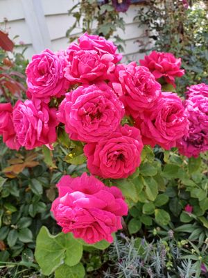 Magnifi-scent, grows to 1.1m, Not red, but not pink either but a great colour to mix with other roses and garden plants. Strong damask fragrance. A double flower that repeats throughout the season.
