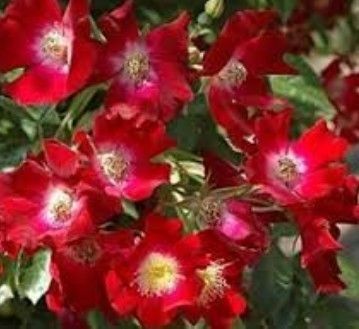 Rich red single flowers carried in great profusion. A striking variety. Vigorous.