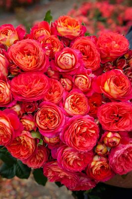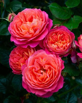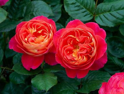 Glowing tropical toned blooms of warm cerise pink with a yellow reverse.
