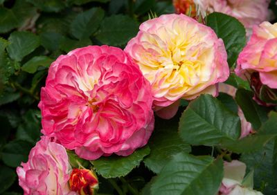 Deliciously different cream buds transform into brushed strawberry petals. Super compact, easy to grow plant with dense foliage. Repeat flowering clusters in a ripple of ruffle formed blooms. Light fragrance. Bred in NZ by Bob Matthews. Height 90cm (NZ Plant Variety Rights)